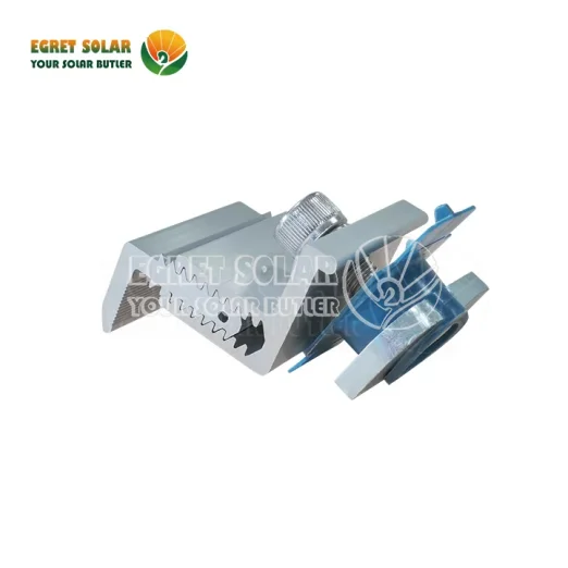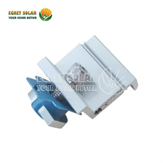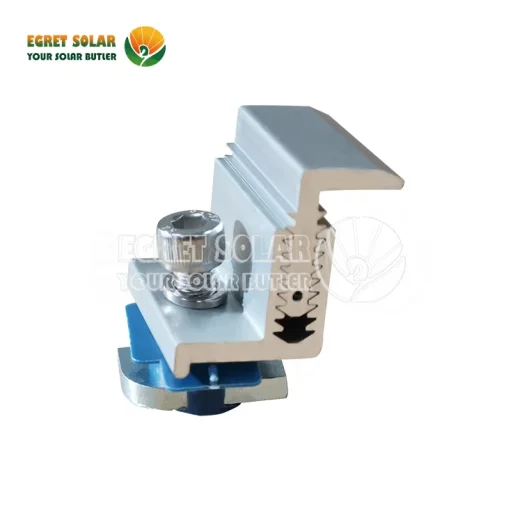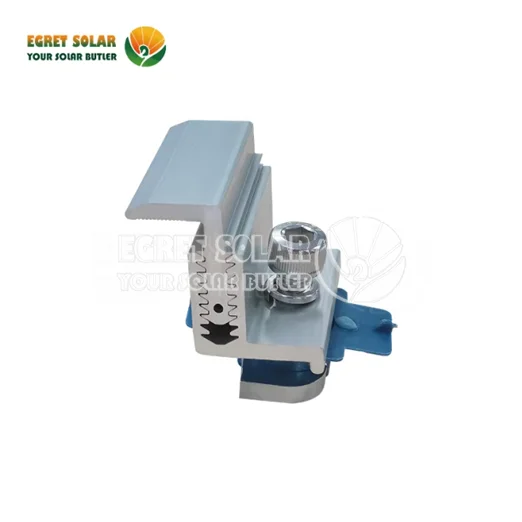Egret güneş paneli ucu uç kelepçesi C çelik rayı için ayarlanabilir, güneş panellerinin ucunda, yüksek rüzgarlarda veya şiddetli kar yağlarında montaj raylarını kaldırmalarını önlemek için kullanılır. Ayrıca güneş paneli dizilerinin uçlarındaki montaj raylarına güneş panellerini sabitlemek için kullanılırlar. Uç kelepçesi, plakalardaki bir yuvadan kablo bağlarını çekerek basit ve güvenli bir bağlantı için bir elle sıkılır.