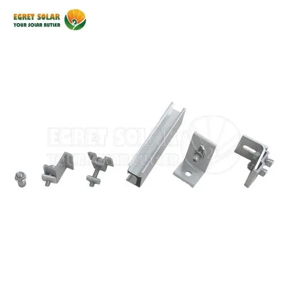 Güneş panelini metal bir çatıya sıkıca monte etmek için, ayakta dikiş kelepçeleri dışında L feet veya ray kelepçelerine, alüminyum raylara, ray konektörlerine, uç kelepçelere ve orta kelepçelere ihtiyaç duyar.